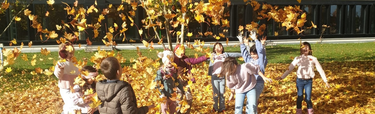 Spiel, Bewegung und viel Gelächter: Die 2A und 3A tobten im bunten Laubhaufen und genossen die herbstliche Sonne.