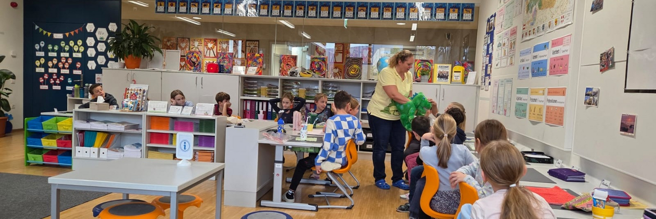 Kroko begeisterte alle Klassen: Richtiges Zähneputzen, Zucker-Check – und jede Menge Spaß.