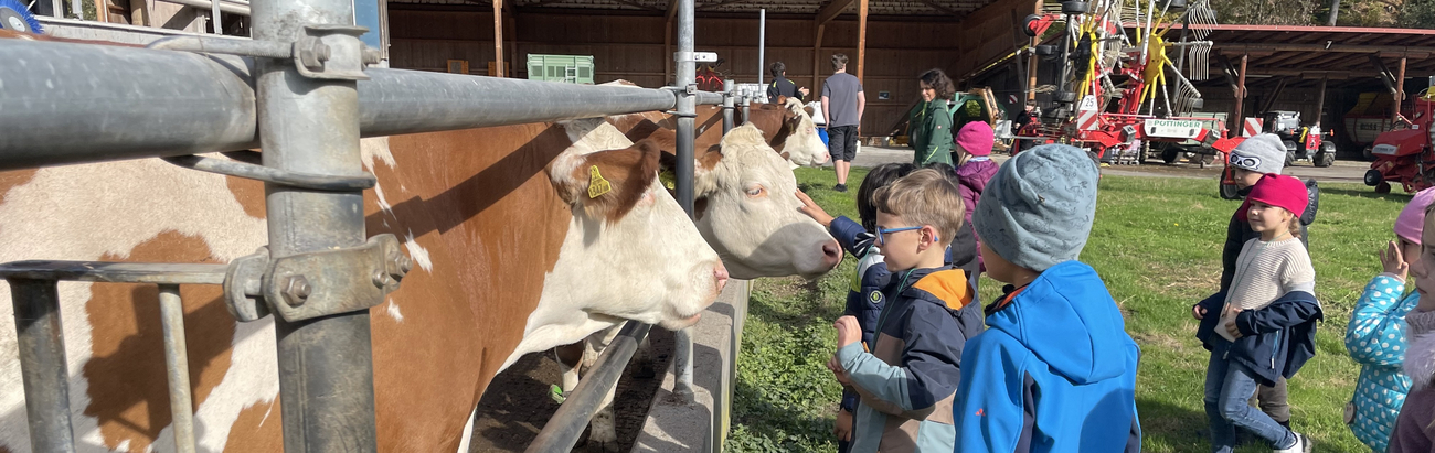 Die 2B entdeckt im Jahresprojekt „Erlebnis Bauernhof“ woher unser Essen kommt – mit Tierpflege, Apfelernte, Hochbeet, Kochen und vielen Sinneserfahrungen rund um gesunde, nachhaltige Ernährung.