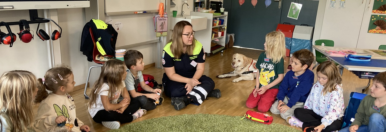 Ein tierischer Besuch sorgte in der 1A für große Begeisterung – Rettungshund Ray zeigte, was ein echter Lebensretter kann.
