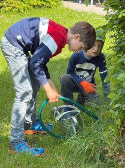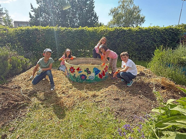 Im Mittelpunkt stand das Pflanzen neuer, regionaler und nachhaltiger Gewächse – mit besonderem Augenmerk auf die Förderung der heimischen Artenvielfalt. Gleichzeitig wurden invasive Pflanzenarten wie der Götterbaum und der Schmetterlingsflieder entfernt, um den ökologischen Wert des Gartens zu steigern. Auch alte, abgestorbene Hecken mussten weichen. Dabei entdeckten die Helferinnen und Helfer zahlreiche Bienen- und Hummelnester – ein erfreuliches Zeichen für die Lebendigkeit des Schulgartens. Nach und nach entsteht nun einerseits ein regionaler Nutzgarten, andererseits wird auch die Spielfläche für Kinder attraktiv gestaltet. In den kommenden Monaten ist noch viel zu tun, doch der Anfang ist gemacht und, dass dank großartiger Unterstützung engagierter Menschen von Groß bis Klein.