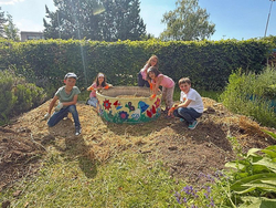 Auch wurden zwei Paletten Hochbeete von Lehrerin Katharina und Studierendem Ben Cerncig, in welchem nun alte Bohnensorten im Rahmen des Citizen Science Project angebaut werden, gebaut. Die Bohnen müssen nun regelmäßig wissenschaftlich überwacht werden. Pünktlich zum neuen Schuljahr werden jene Samen geerntet und verarbeitet. So lernen die Kinder vor Ort und hautnah alles rund um die alten Bohnen und ihren Stellenwert in der Ökologie. Neben den Bohnen können die Kinder nun auch den Anbau von Erdäpfeln in der neugebauten Erdäpfelpyramide beobachten und im Herbst frische und selbst gewachsene Erdäpfel genießen!