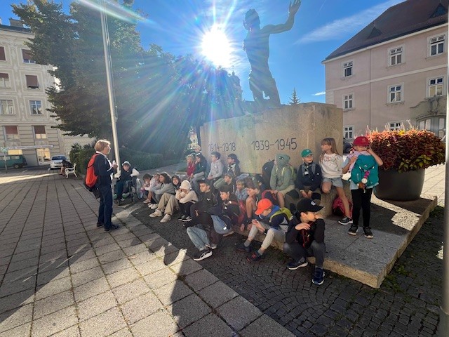 Bei strahlendem Sonnenschein machte sich die 3B am 15. September gemeinsam mit der ehemaligen Direktorin und nunmehrigen Fremdenführerin Angelika Dobrowsky auf den Weg, um die Stadt Baden zu erkunden. An zahlreichen Stationen gab es Spannendes über die Geschichte und Besonderheiten des Heimatortes zu erfahren.