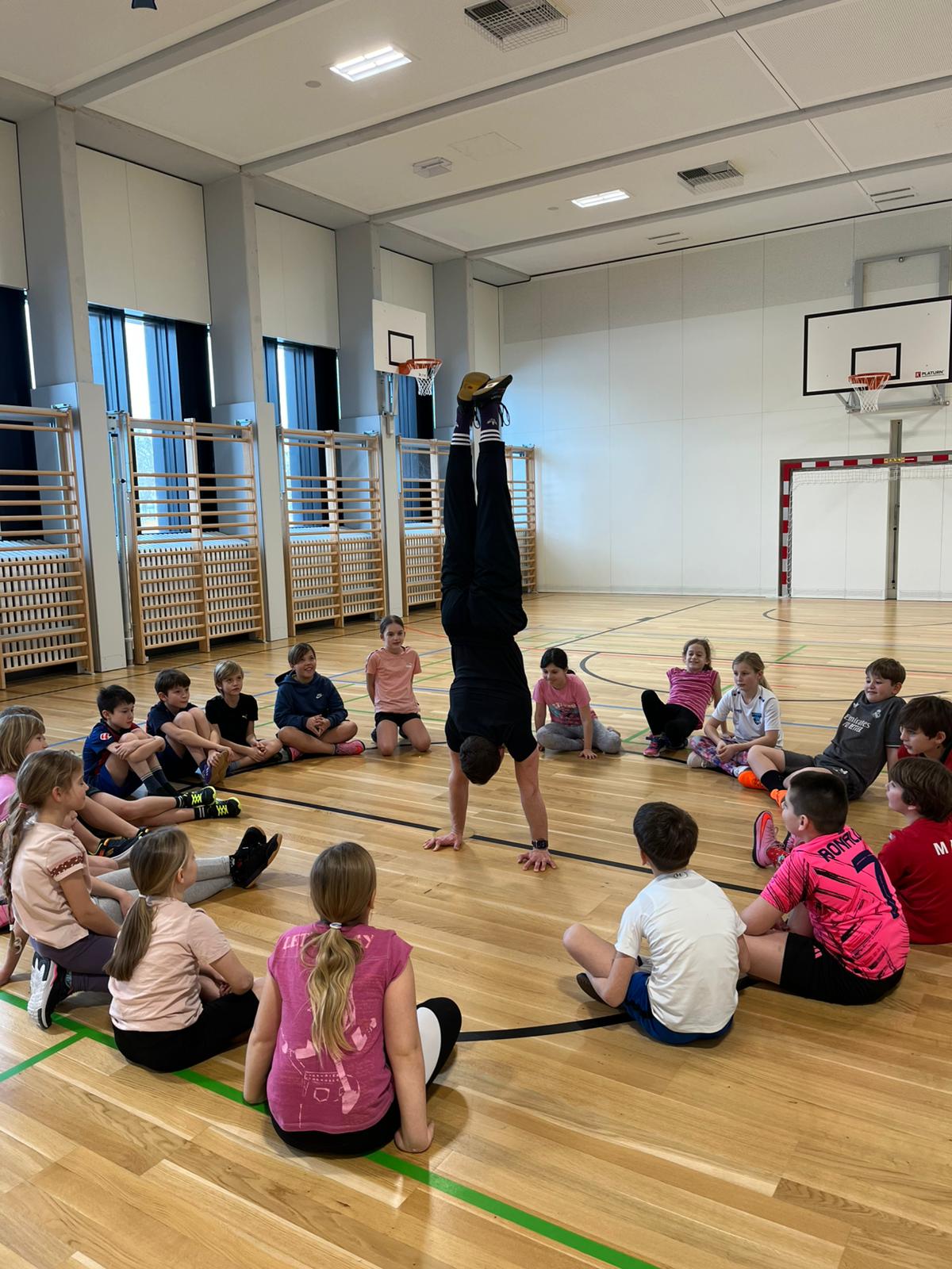 Im Rahmen des Workshops „Alles steht Kopf“ durften die Kinder einen besonderen Bewegungsvormittag erleben. Geleitet wurde der Workshop von Clemens Palz, diplomiertem Personal Trainer und ausgebildetem Volksschullehrer mit dem Schwerpunkt Sport.