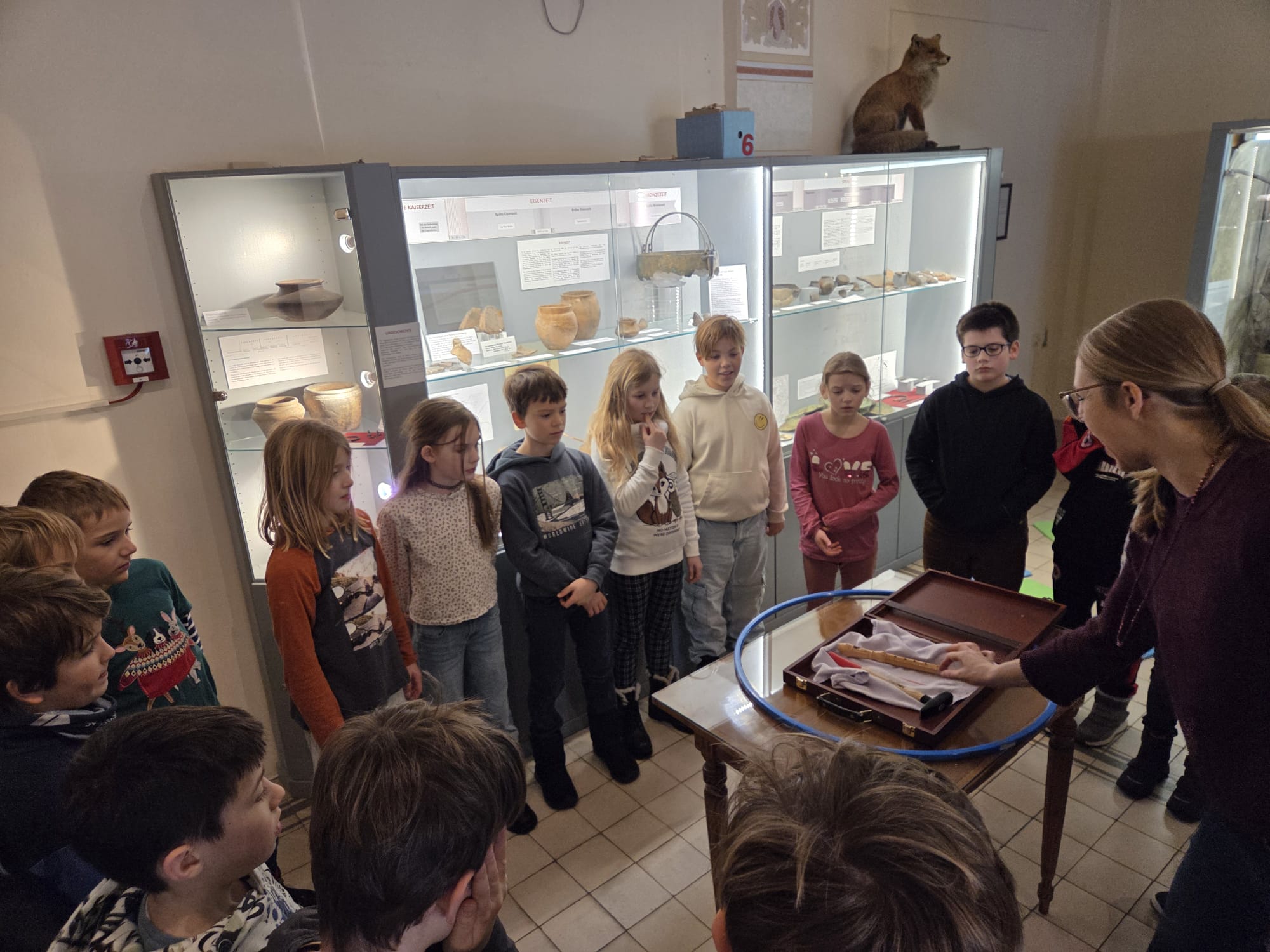 Im Museum konnten sie zahlreiche Exponate entdecken, die einen Eindruck davon vermitteln, wie steinzeitliche Menschen gearbeitet und gelebt haben. Die Kinder erfuhren, welche Materialien damals genutzt wurden, zum Beispiel Stein, Holz, Knochen und Leder und warum diese Stoffe so wichtig waren. Auch das Thema Werkzeuge spielte eine große Rolle. Die Kinder lernten, dass hinter scheinbar „einfachen“ Gegenständen viel Wissen, Geschick und Erfahrung stecken.