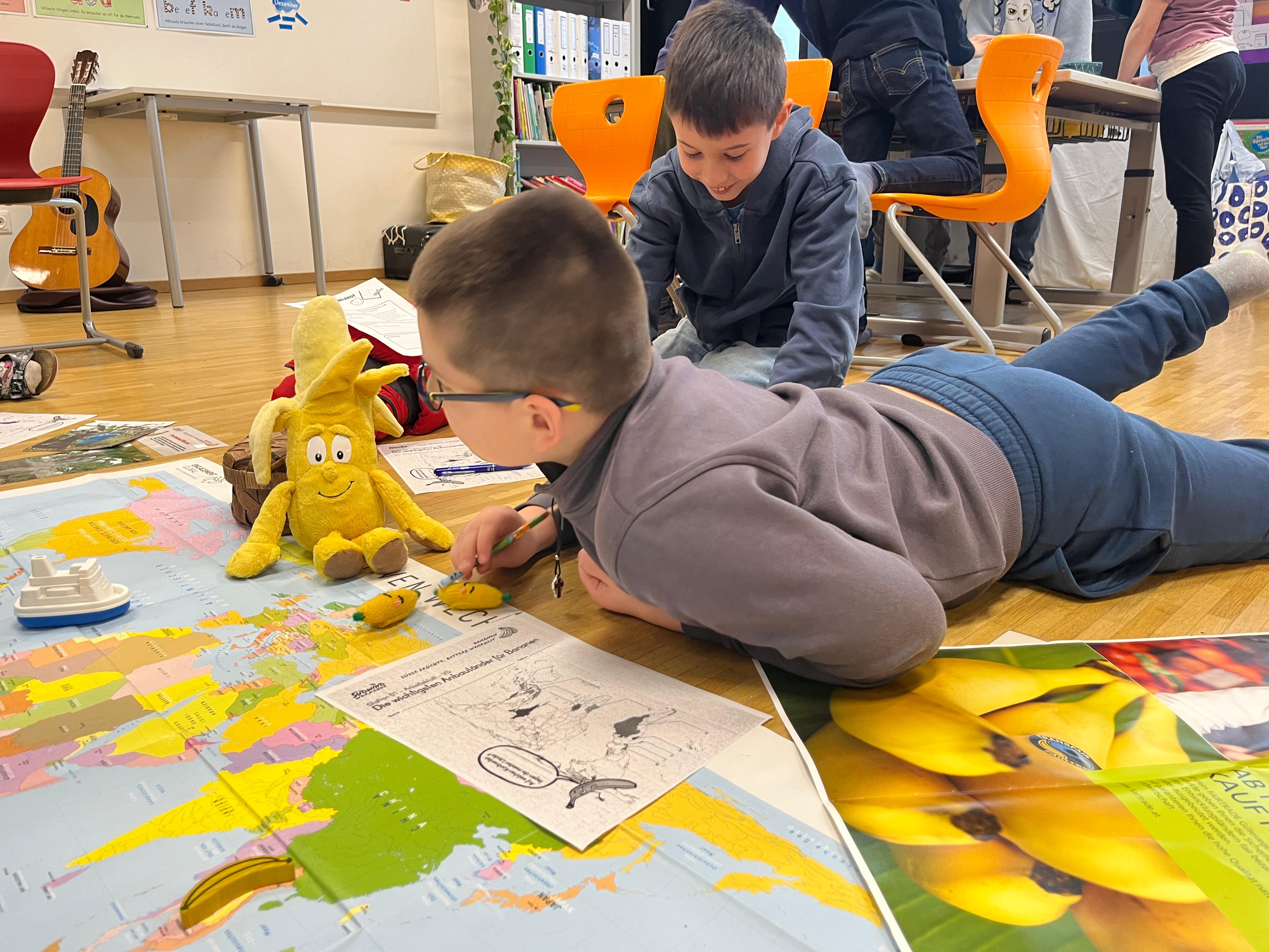 Besonders interessant war für die Kinder die Erkenntnis, dass ein Großteil der weltweit angebauten Bananen Kochbananen sind, die in vielen Ländern als Grundnahrungsmittel dienen. Zum Abschluss beschäftigten sich die Schülerinnen und Schüler mit der Frage, wie bewusster Konsum aussehen kann und woran man eine bio-faire Banane erkennt. Dabei wurde deutlich, wie wichtig es ist, beim Einkaufen auf Siegel und Zertifizierungen zu achten.