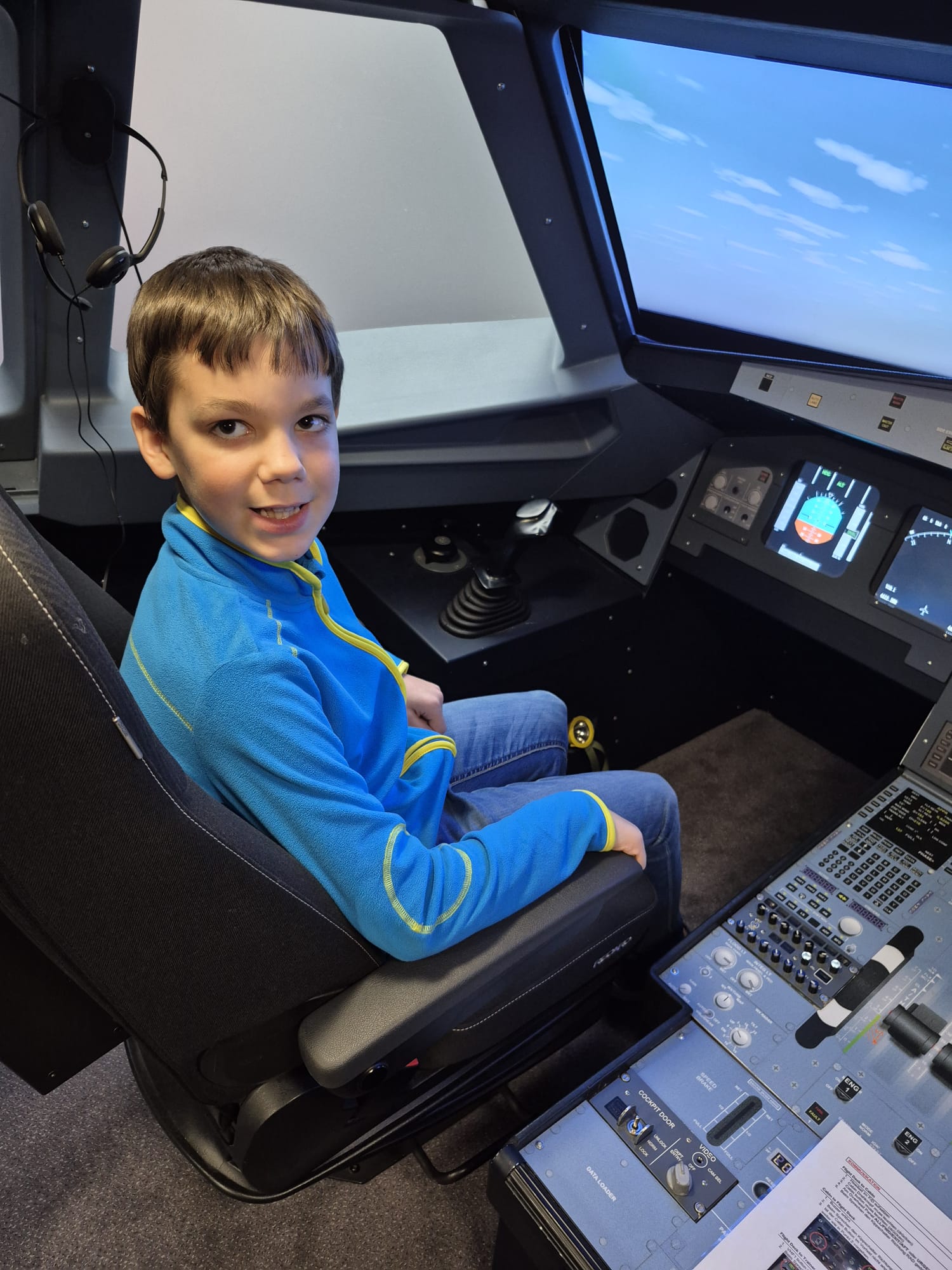Nach einer guten Jause in der Pause ging es weiter zu den Flugsimulatoren. Auch dieser Programmpunkt war für alle besonders interessant, denn hier wurde sichtbar, wie realitätsnah Pilotinnen und Piloten auf verschiedenste Situationen vorbereitet werden. Im Feuerlösch-Trainingsraum konnten die Kinder außerdem beobachten, wie ein Feuer an Bord gelöscht wird. Dabei wurde eindrucksvoll vermittelt, wie wichtig Ruhe, Übung und klare Abläufe in Notfällen sind.