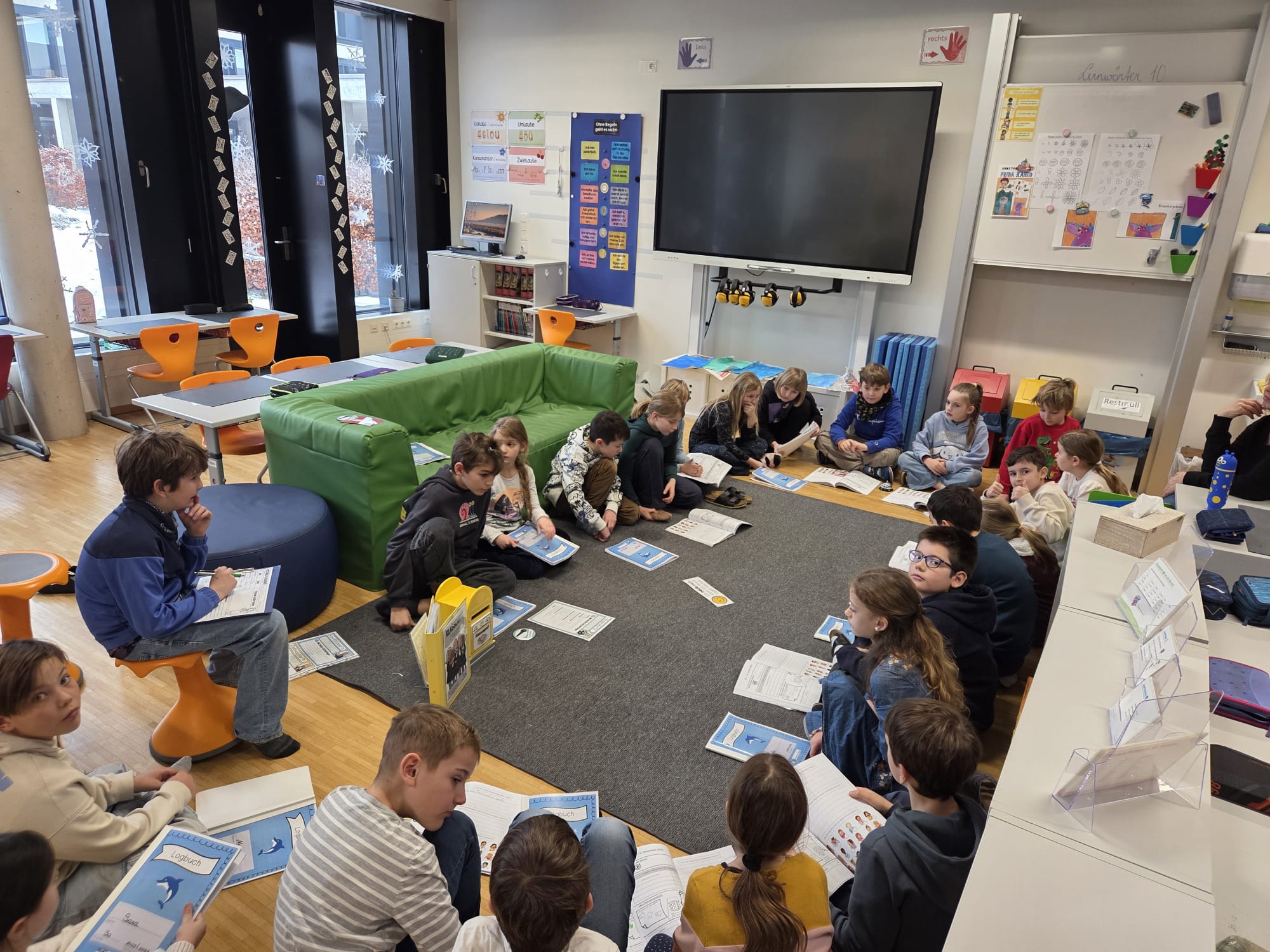 Im Klassenrat werden unter anderem unsere Wochenziele besprochen und am Ende der Woche gemeinsam reflektiert. Was ist gut gelungen? Was möchten wir verbessern? Außerdem bringen die Schüler und Schülerinnen ihre Anliegen ein, ob es um das Miteinander, um Ideen für die Klasse oder um Herausforderungen im Alltag geht. Gemeinsam werden Vorschläge gesammelt, Lösungen erarbeitet und anschließend demokratisch abgestimmt.