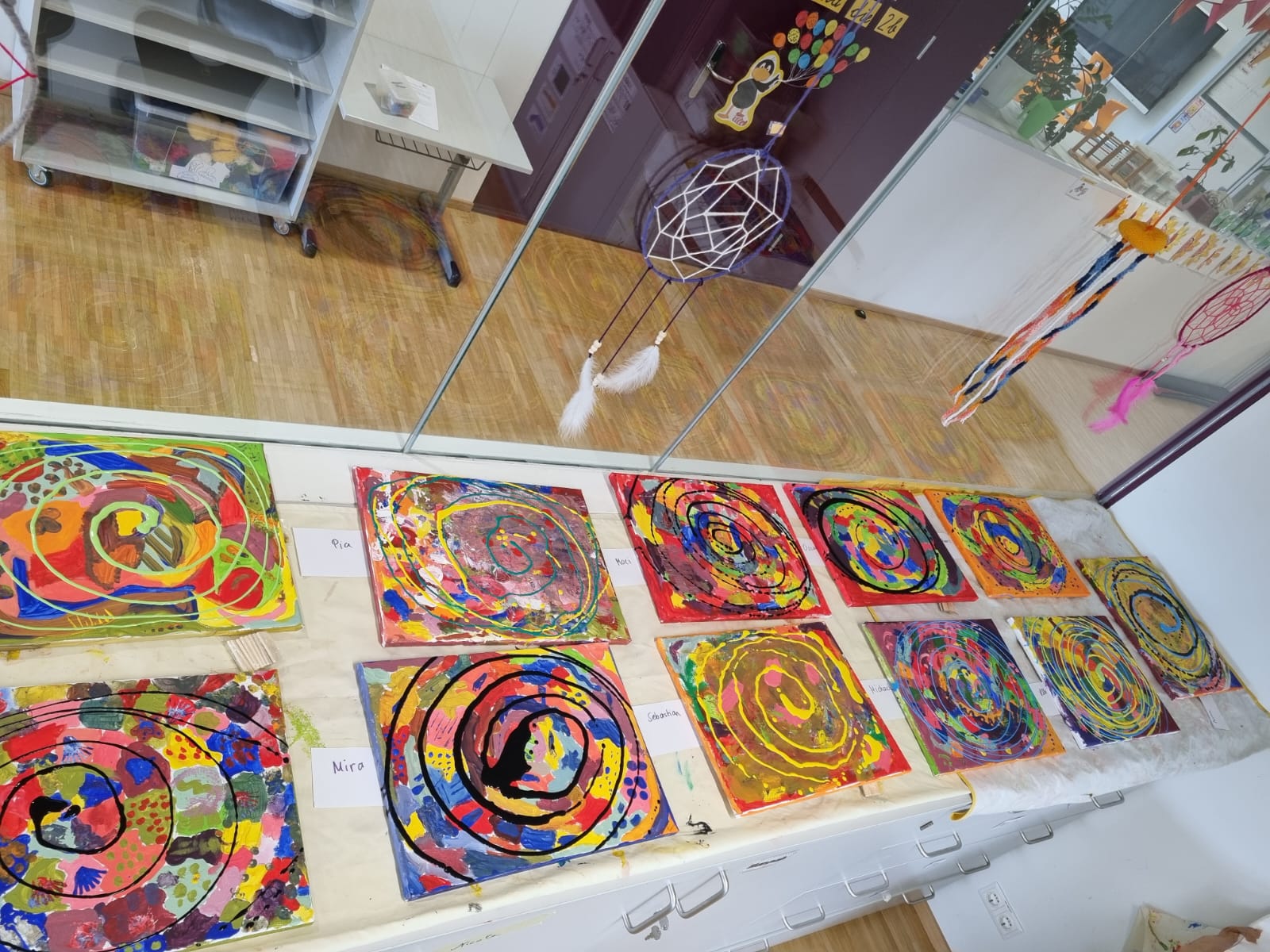 Anschließend durften die Schülerinnen und Schüler selbst kreativ werden: Mit Farben, Formen und Fantasie malten sie ihre ganz persönlichen Hundertwasser-Spiralen. Dabei entstanden bunte, individuelle Kunstwerke, die die Vielfalt und Kreativität der Kinder widerspiegeln.