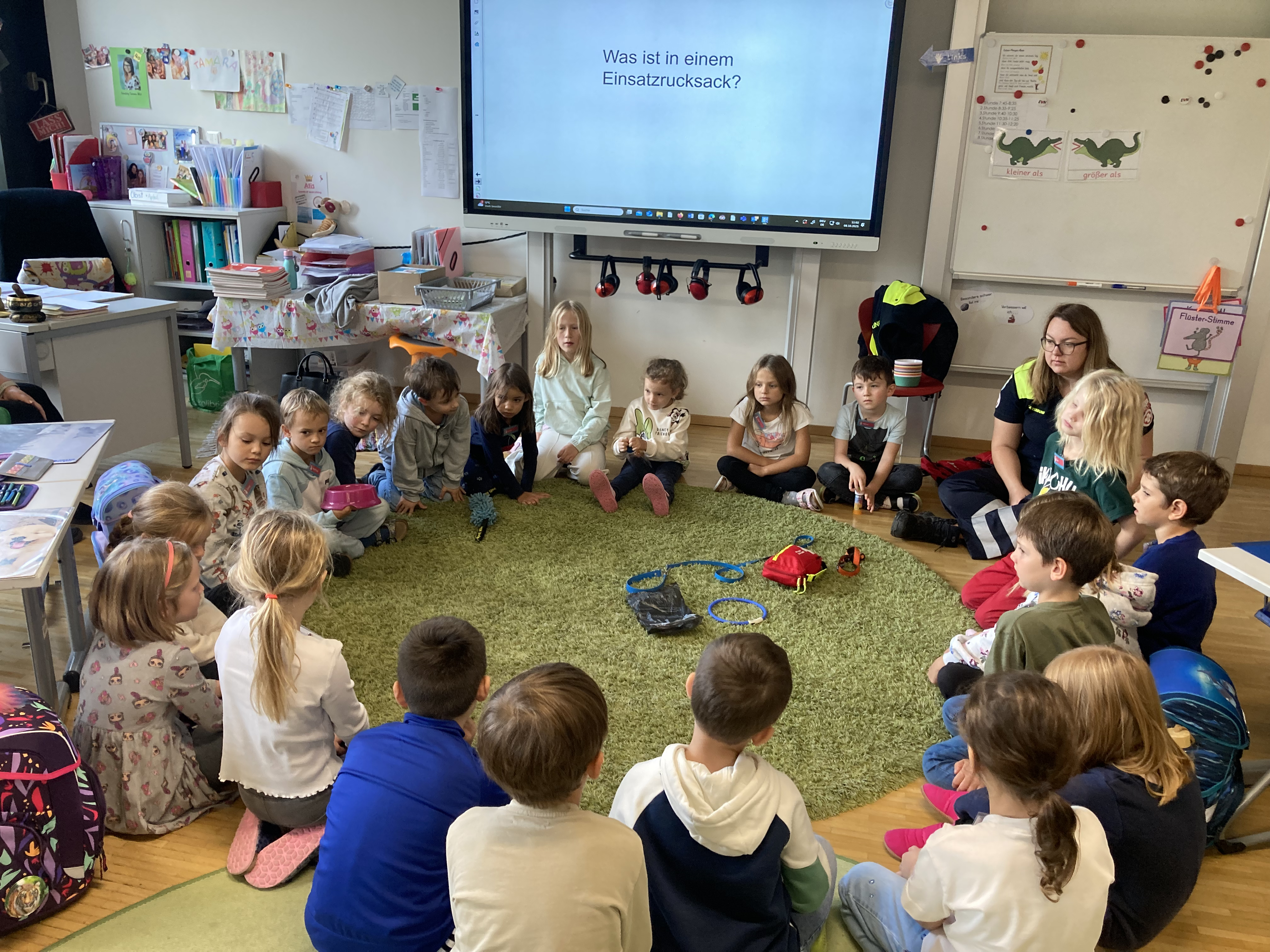 Am 8. Oktober bekamen die Schülerinnen und Schüler der 1A besonderen Besuch: Rettungshund „Ray“ kam gemeinsam mit seiner Hundeführerin Emily Pöllhuber in die Schule. Mit viel Geduld und anschaulichen Erklärungen erzählte Emily den Kindern von den wichtigen Aufgaben eines Rettungshundes und zeigte, welches Einsatzzubehör dabei zum Einsatz kommt.