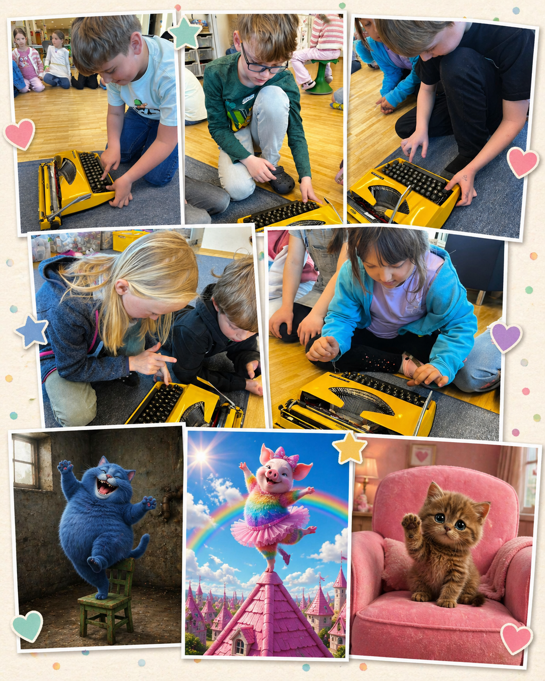 Ein besonderes Erlebnis war das Arbeiten mit einer alten Schreibmaschine aus den 1970er Jahren. Mit großer Neugier probierten die Kinder aus, wie früher Texte geschrieben wurden, und stellten schnell fest, wie unterschiedlich das Schreiben im Vergleich zu heutigen digitalen Geräten ist.