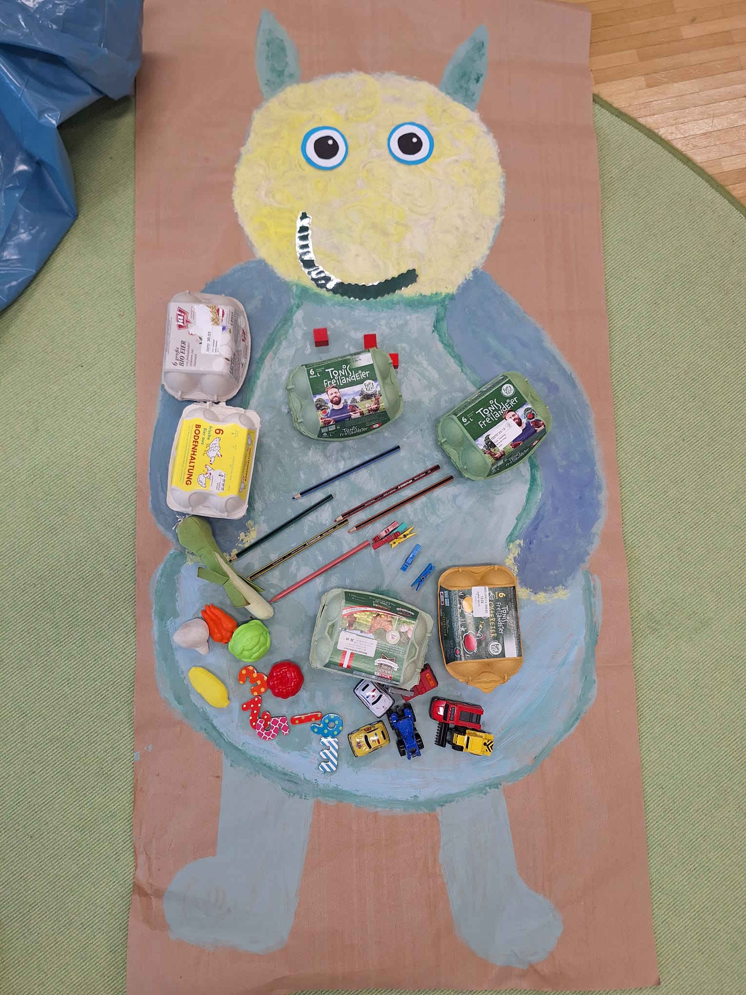 Mit großer Begeisterung waren die Kinder bei den vielfältigen Aktivitäten dabei: Das hungrige Müllmonster „Mülli“ wurde mit richtig sortiertem Abfall gefüttert, aus alten Eierkartons entstanden kreative und farbenfrohe Türkränze, und beim gemeinsamen Singen des Liedes „Der Müllmann kommt“ wurde das Gelernte musikalisch vertieft.