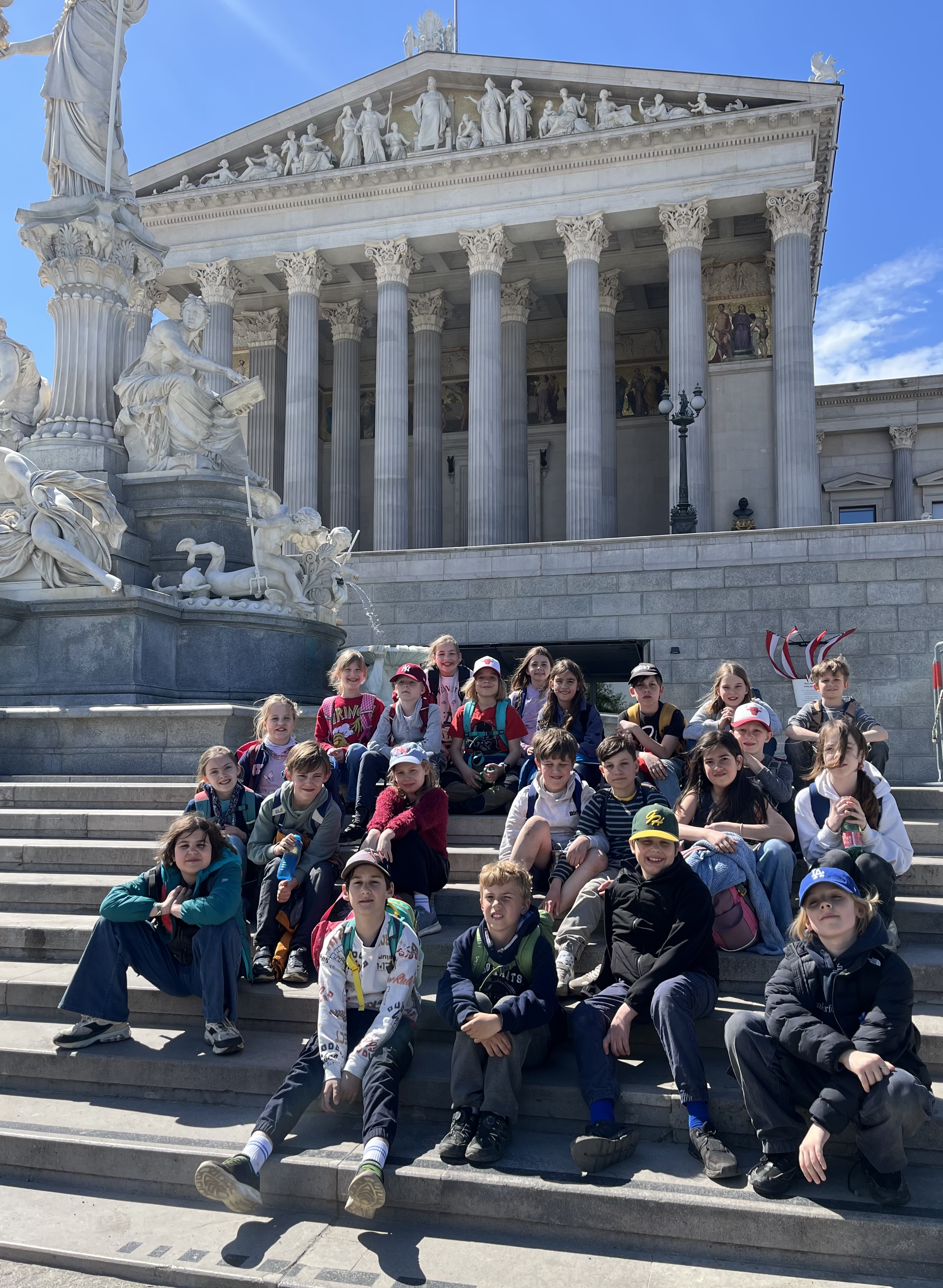 Nach einer Mittagspause beim McDonald’s am Schottentor und einer gemeinsamen Spielzeit im Rathauspark ging es am Nachmittag weiter zum nächsten Programmpunkt: dem Parlament. Dort wurden die Kinder herzlich von der Badener Bürgermeisterin Carmen Jeitler-Cincelli begrüßt. Im Anschluss folgte eine spannende Führung durch die Säulenhalle und einen Sitzungssaal, bei der die Kinder Einblicke in politische Abläufe erhielten.